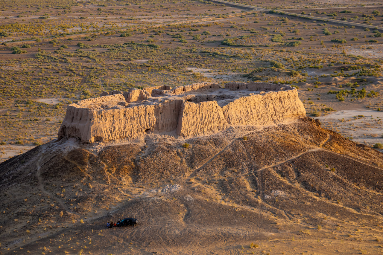One dates back to the 3rd-4th centuries BC and is located right here, and the other, a necropolis fortress, dates back to the second half of the 1st century AD and is located southwest of the main fortress. On a high hill, not far from the Salt Lake Ayaz-kul, there is a large fortress of the first settlement of Ayaz-Kala.