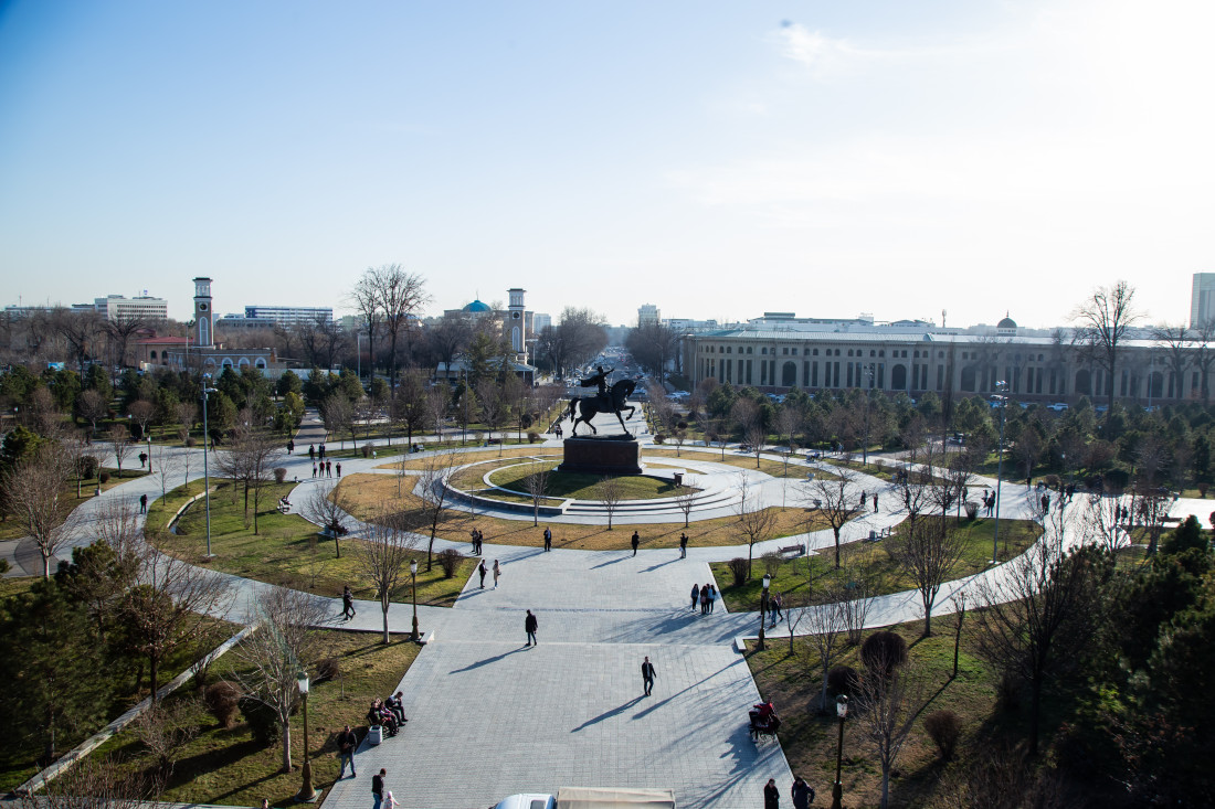 Am 31. August 1994, am Vorabend des dritten Jahrestages der Unabhängigkeit Usbekistans, wurde der Platz "Parkanlage Amir Temur" genannt und in seiner Mitte ein bronzenes Reiterdenkmal eröffnet. Der erste Präsident Usbekistans Islam Abduganievich Karimov, der bei seiner Eröffnung anwesend war, hielt eine Rede, in der er sagte: „Unser Volk, das sich viele Jahre in den Fängen der Kolonialherrschaft befand, wurde der Möglichkeit beraubt, seinen großen Landsmann zu ehren und mit seinen historischen Verdiensten gerecht zu werden.“