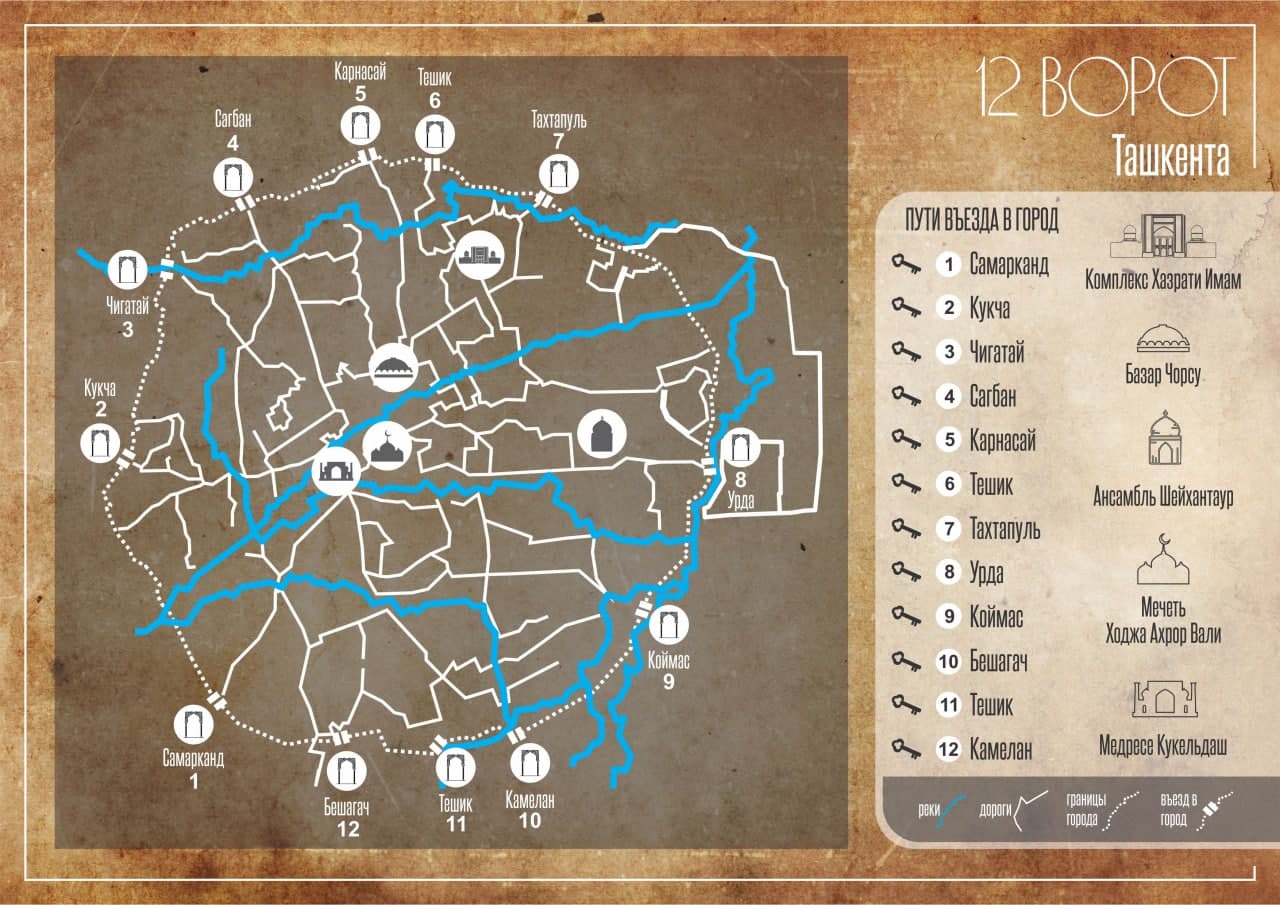 The number 12 was not chosen by chance and the city of Tashkent was the only city in the whole world with such a number of gates. Since the shape of the city wall coincided with the system of starry luminaries, scientific people guessed to build the number of gates according to the location of the 12 stars of the Zodiac according to the cycle of Torments. Thus, the 12 gates were an earthly reflection of the heaven bodies.