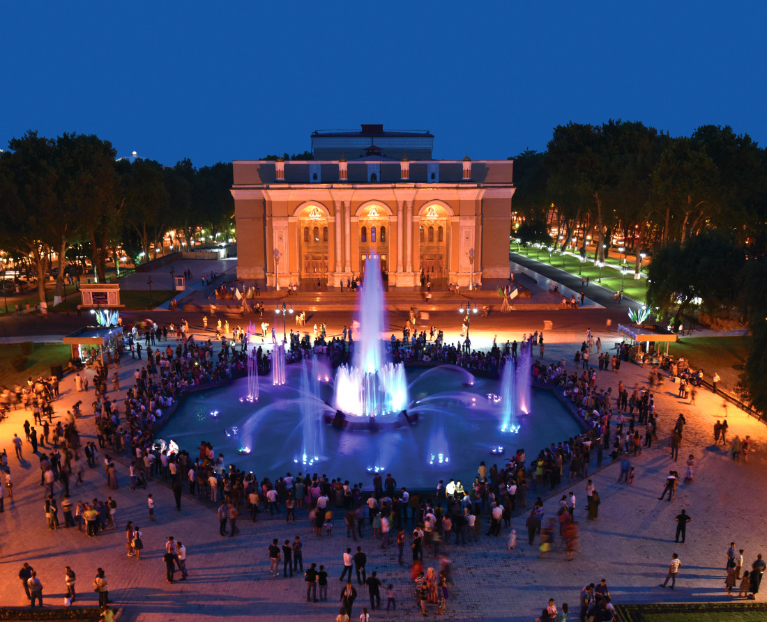 1. The fountain near the Alisher Navoi Opera and Ballet Theater is one of the oldest in Tashkent. It was designed as a cotton boll in 1947. In 2010, the fountain was reconstructed - now it is a dancing color and music fountain and one of the most crowded recreational areas in the city.