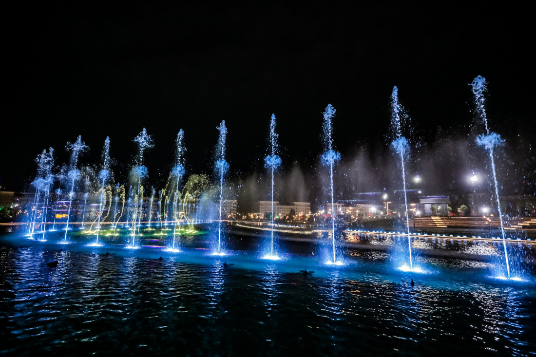 5. The musical fountain of the Tashkent City Park is the largest fountain in Tashkent. Its length is two hundred meters, it is located right in the center of the lake. Every evening, the fountain delights with an incredible laser light show, magnificent flowing figures, illuminated by bright changing colors. The flow of the fountain's water rises to an eighty-meter height, thereby attracting fascinated glances.