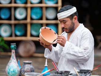 Ферганская долина славится своими ремесленническими мастерскими. И это не просто так! Самыми частыми подарками из Ферганы являются керамические изделия, поделки из дерева и конечно же произведения ткацкого искусства – Хан Атлас, Адрас и Шелк. Если потратить не много драгоценного времени и съездить в Риштан, который находится всего в 50 км от города, то Вы попадется в керамический рай! Именно в этом городке зародилась та самая уникальная роспись свинцовой глазурью и полуфаянсовая посуда известная как «чини».