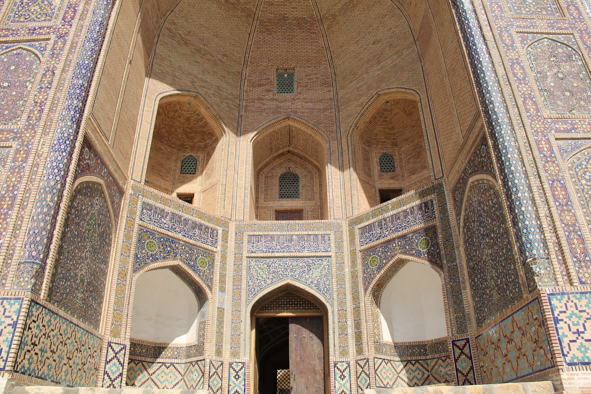 Во внутреннем дворе располагаются учебные комнаты – худжры, а летние аудитории выполнены в виде айванов с небольшими порталами.
