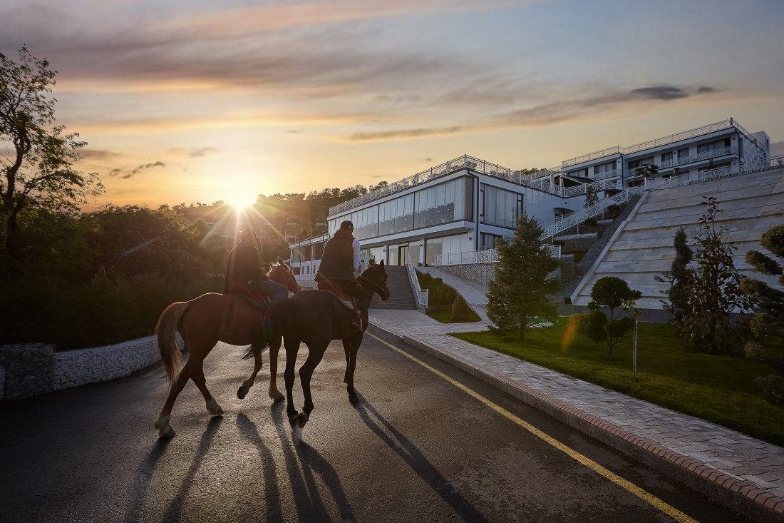 Здесь вы можете отправиться на прогулку по живописным окрестностям курорта. Опытные инструкторы обучат начинающих управлять лошадьми, а умелые всадники могут совершенствовать свои навыки.