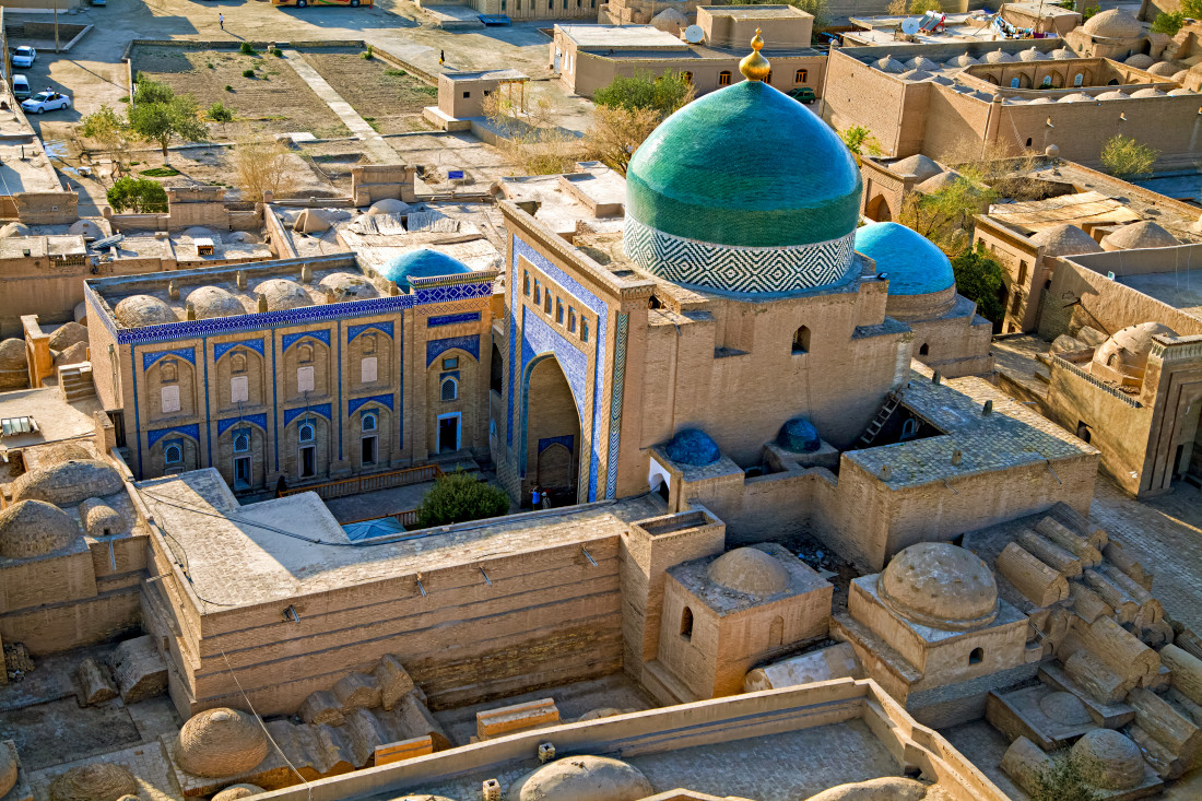 Hovliga kirilganda, baland va nafis peshtoq ko‘zga tashlanadi. U Xiva mayolikasiga xos ko‘k, moviy va oq ranglar bilan qoplangan yashil “kamon” bezaklari bilan sayqallangan g‘ishtlardan terilgan.